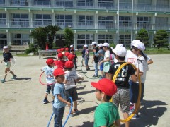 1年生と6年生とで一緒に遊ぶ交流会をしました。縄跳びやしっぽとり鬼ごっこ、ブランコ遊びなど、6年生が遊び方を教えながら、一緒に遊びました。1年生にも6年生にも、たくさんの笑顔が見られる1時間になりました。今度一緒にまわる甚小まつりが楽しみですね。