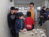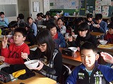 1月27日(金)、今日はマラソン大会。寒さは厳しいものの、風がない絶好のマラソン日和となりました。沿道には、PTA役員の方の他、応援に来られたたくさんの保護者の方々の姿があり、多くの声援を浴びながら、一人一人歯を食いしばって走る姿が見られました。結果を喜ぶ子、残念がる子様々でしたが、走りきったという充実感はどの子からも感じられました。さあ走り終わった後は、お楽しみのぜんざいです。前日から準備をして下さったPTA役員の方々にしっかりとお礼を言って、おいしくぜんざいをいただきました。役員の方々には、お忙しい中ぜんざい作りで、大会を盛り上げていただきありがとうございました。
