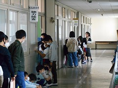 毎年、この時期になると来年度入学予定の未就学児を対象に就学時健診を行います。今年も、今日の午後、5年生の児童に手伝ってもらいながら行いました。現在のところ、来年度入学予定の子は、97名です。いつもの保育園や幼稚園と違って、階段の広さや教室の多さに戸惑った子もいたかもしれません。