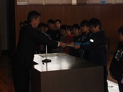 1月23日(月)朝礼時に、3学期学級委員認証式を行いました。先週は雪のため朝礼が中止となりましたので、1週間遅れの認証式となりました。3学期は1年のうちで一番短い学期ですが、学年のまとめとして、クラスがまとまって次の学年や学校へ進級、進学できるよう、舵取り役をよろしくお願いします。