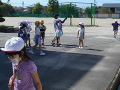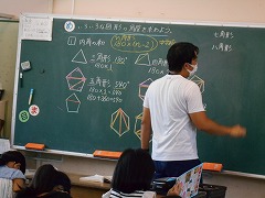 今では、2期制となり、エアコンの効いた教室でどの教室でも普通にいつもの授業が行われていました。2年生は、生活科で外に虫取りに出かけているクラスがありました。今も昔も不思議と虫を見つける嗅覚にすぐれた天才児がいます。1年生のクラスでは国語の教材を劇化する練習をしていました。5年生は算数科の授業です。三角形や四角形の内角の和の学習をもとに、多角形の内角の和の求め方を考える問題を解いていました。三角形の何個分で考えたり、三角形と□角形に分けて考えたり、いろいろな方法を見つけていました。4年生は、国語科の授業で新聞づくりをしていました。タブレットを使うと、クラスのみんなに簡単にアンケートを行うことができ、それぞれの回答も一覧になって見られるようです。新聞もいくつかの付せんを張り合わせることでとても見ばえのよいものができそうです。2・3年前に授業とは隔世の感があります。