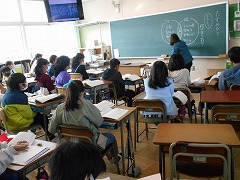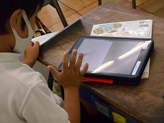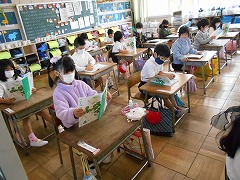 教室を巡るとどこの教室も国語や算数の学習をがんばっていました。前に日の板書をタブレットに撮り、モニターで映しているクラスもありました。こういう使い方もできるのかと思いました。どの学年も国語は読み物教材でした。何度もくり返し音読し、劇化するなどして、登場人物の気持ちを読み取ったり、話のおもしろさを味わっていました。家庭でも音読の機会を設けて、聞いてあげてください。活字を読める子に育てることは、すべての教科の理解につながります。
