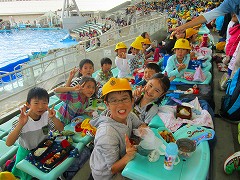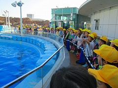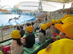 少し汗ばむ陽気の中、2年生が名古屋港水族館へ校外学習に出かけました。館内を見学したあと、イルカショーの座席で少し早めのお弁当をいただきました。そのあと、みんなが楽しみにしていたイルカショーを観覧しました。曲にあわせて手拍子をうちながら楽しそうにショーを見学した2年生。ダイナミックなイルカたちの演技に、みんなが歓声を上げていました。その後はイワシのトルネードショー、館内の様々な水槽などを見てまわりました。帰りのバスでは、たくさん歩いた疲れからかぐっすり眠ってしまう子が多くいました。