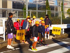 職場体験学習として、11月8日~10日に甚目寺南中学校から2人の中学生がきてくれました。教室で先生の手伝いをしたり、休み時間に運動場で子どもたちと一緒に遊んだりしながら、小学校の先生の仕事について学んでいます。11月9日には、登校指導に出かけ、子どもたちや地域の人にあいさつの声をかけながら、横断指導を行いました。