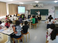本日、講師の方をお招きして「ストップ温暖化」の出前授業をしていただきました。