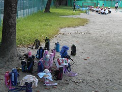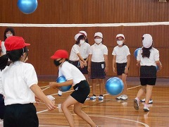 今日はこの時期としては比較的涼しい中でしたが、3限目は、3年生が外で鉄棒、1年生は外で夏休みに作った作品で遊ぶ活動、4年生は体育館でボール運動をしていました。活動に夢中になれば、大声を出すなと言っても小学生には難しいです。それでもできるだけの配慮・工夫をしています。
