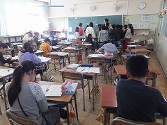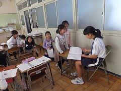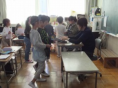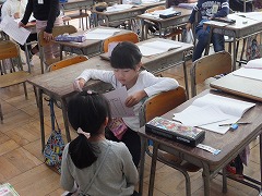 2年生の九九では、全員の子に確実に習得してもらうように、一人一人に対してていねいに対応し、合格を出していました。合格サインに、ニコニコです。そのためにはどうしても先生の数が必要です。TTの先生だけでなく、職場体験の中学生、そして合格をしたクラスの友達も先生となって学び合い、高め合っていました。
