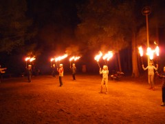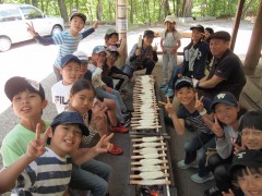 5月20日(日)・21日(火)と5年生が、旭高原少年自然の家へ野外活動に出かけました。学年として宿泊する初めての行事です。入所式後、シーツの扱い方に苦労しながら、ベッドメーキングを行いました。自分の寝る場所は自分で用意するというところからのスタートでした。第1日目は、創作活動でスプーン作りに取り組み、そのスプーンを使ってカレーを食べるという流れです。その野外炊飯は、水加減と火加減に注意しながら、班内での役割にしたがってカレーライスを作りました。自然の中で自分たちでつくった「味」は思い出の1つとなります。夜はキャンプファイヤー。各学級のスタンツに加え、練習を積み重ねてきたトーチトワリングに、大きな声援と拍手が送られました。2日目は、朝の集いで同宿の甚目寺西小学校と活動紹介を行った後は食堂での朝食。ブッフェ方式に戸惑いながらも片付けまできちんと行うことができました。その後、ハイキングで旭高原元気村へ行き、4コース(五平餅・もちつき・自然薯すり・豆腐づくり)に分かれた体験活動に挑戦しました。天候に恵まれ、多くの思い出とともに帰校しました。この経験を振り返り、6年生の修学旅行に結びつけてほしいと願っています。