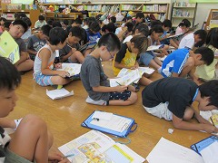 夏休みの4年生環境学習会、第2回目は地球温暖化についての出前授業です。愛知県の地球温暖化防止指導員の先生に来ていただいて学習をしました。昔のエネルギーをあまり使わない生活と、電気や石油などたくさんのエネルギーを使う生活について考えたり、今の生活で気をつけていかなければならないことを教えていただいたりしました。また、、折った紙を上手に振って「パン!」と音を出す紙鉄砲の作り方を教えてもらいました。ゲーム以外にも、夢中になって楽しめる遊びがたくさんあることも教えていただきました。講師として来ていただいた指導員の先生、ありがとうございました。