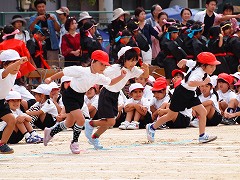 「甚小魂 心を一つに 笑顔で始まり 笑顔で終われる運動会」をスローガンに、一生懸命さと笑顔にあふれた1日でした。