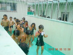今日から水泳指導が始まりました。幸い梅雨の合間の蒸し暑い天気で、予定通りプール開きが出来ました。久しぶりの水の感覚に心ウキウキだったのではないでしょうか。一生懸命練習して、上手くなって下さいね。