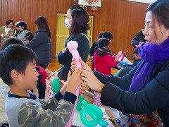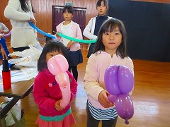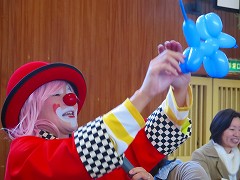 11月26日(土)、PTA研修委員さん主催で家庭教育学級「クラウンパフォーマンス&バルーン教室」が開かれました。ピエロに扮した講師の方の素晴らしいパフォーマンスを見た後、親子でバルーン作品に挑戦しました。親子の絆も深まり、あっという間に楽しい時間が過ぎました。