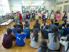 本日はたくさんの保護者の方々、そして園児のみなさんに来ていただき、ありがとうございました。発表会の前には6年生を招待し、遊んでもらい、アドバイスをもらいました。いろいろな方々のおかげで、1年生の子どもたちもこれまでの練習の成果を発揮し、よびかけや群読、歌、秋のお店屋さんを元気に発表することができました。