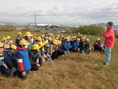 青塚古墳では、古墳の造りや出土した物などについて詳しく説明していただき、実際に古墳に上がらせていただくという貴重な体験もできました。子ども達は、歴史ある物を守っていくことの大切さを感じていたようです。