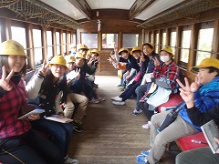 明治村では、班ごとに見学先を決め、村内を回りました。重要文化財に指定されている建物を見たり、蒸気機関車に乗ったり、楽しみながら明治の暮らしについて学ぶことができました。