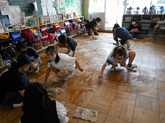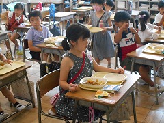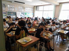 朝の時間に、私から夏休み前の講話と生活指導の担当から夏休みの過ごし方の話をしました。3時間目には通学団会で1学期の反省をしました。そして、大そうじをして、休み前の最後の給食をいただいて、午後2時に一斉下校します。