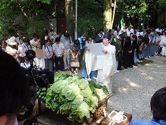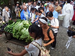 萱津神社チームは、2度目の取材活動へ出かけました。この日は香の物祭が行われており、多くの人で賑わっていました。子ども達は、本殿祭を見学した後、漬込神事に参加しました。お話を聞くだけでなく、実際に祭りの様子を見たり参加したりしたことで、萱津神社についてさらに詳しく知ることができたようです。