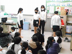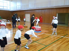 寒い中ですが、運動場では3年生が体育でリレーの練習をしていました。体育館では2年生が跳び箱の練習をしていました。体育館では呼気が激しくなるような運動は見合わせるようにしています。運動場でも息が苦しい運動時以外では、できるだけマスクをしています。保健室では4年生が身長・体重測定をしていました。