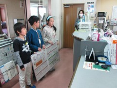 2年生が生活科で作成した商店街のお店地図をたくさんの方に見てもらおうと、今日は商工会へ代表児童が掲示のお願いに出かけました。子どもたちが掲示をお願いすると、商工会の方々は快く引き受けてくださいました。これから1年間、掲示される予定です。また、あま市甚目寺庁舎、甚目寺公民館にも掲示をさせていただきました。お立ち寄りの際はぜひご覧下さい。