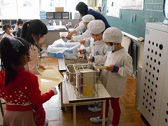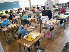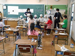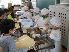 準備も12時頃からぼちぼちと始めました。教頭先生らの応援も借りながら、なんとか初めての給食をいただくことができました。