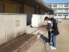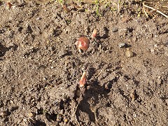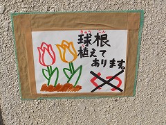 今体育館東花壇に、チューリップの球根が植えてあります。毎日委員会の子が水やりをしています。4月は、チューリップがいっぱい咲いている中、入学式や始業式が迎えられそうです。