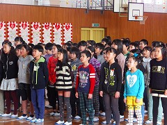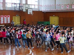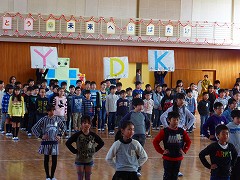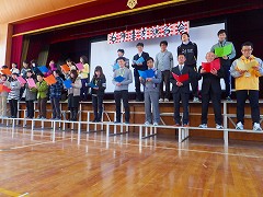 今までお世話になった6年生に感謝の気持ちを伝える会。司会者は5年生ですが、各学年が出し物を考えて密かに練習してきました。また、児童会からの出し物や先生達からの出し物もあり、6年生が楽しむだけでなく、全校が『6年生ありがとう』という気持ちでひとつにまとまる温かい時間になりました。