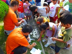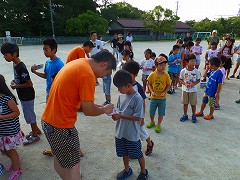 夏休みに入って毎日行われていたおやじの会主催の朝のラジオ体操は、7月31日(日)で終わりました。11日間早起きしてがんばったご褒美として、最終日にはジュースやメダカが配られました。今年は雨で中止になることなく出来ました。「去年のメダカまだ生きてるよ」とおやじの会の方に話しかける子がいて、ぜひ今年のメダカも大切に育ててほしいなと思いました。明日から8月に入ります。ラジオ体操は終わりましたが、早寝早起き朝ご飯の生活習慣は守って、夏休みを健康に過ごして下さい。