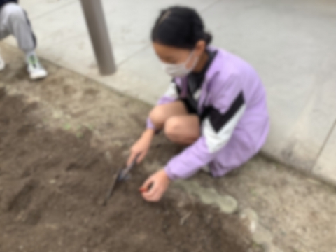 今日の6時間目に委員会活動がありました。飼育・栽培委員は、来年度の入学式のためのチューリップの球根を植えていました。綺麗に咲くといいですね。