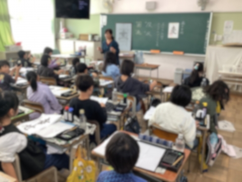 4年生は書写の時間に、『麦』という文字を書きました。形に気をつけて書いていました。