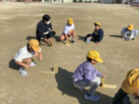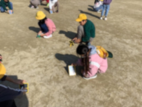 3年生の理科では、運動場で太陽の光を調べていました。鏡を使って、太陽の光を反射させてどうなるのか実験していました。