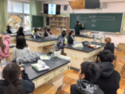 5年生は、理科で『ものの溶け方』の学習をしています。実験で食塩が溶けている様子をじっくりと観察していました。