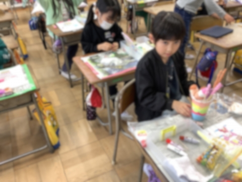 2年生は、作品展に向けて、とても美味しいそうなものを作っていました。色や素材を工夫しながら楽しそうに作っていました。