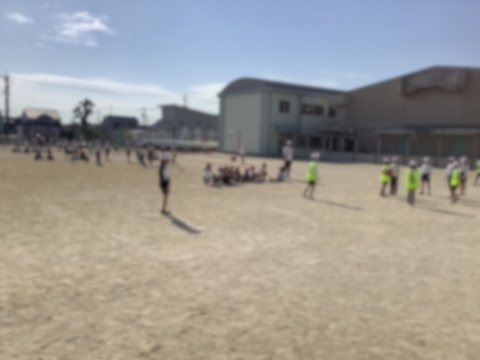今日はとてもいい天気となりました。1年生は体育の時間に外で元気いっぱい体を動かしていました。