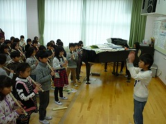 先日のオーディションで選ばれた伴奏者と、6時間目の始めに決まった指揮者に合わせ、みんなで「エーデルワイス」を合奏しました。1組に低音パートを任せ、2~4組は高音パートで曲を引っ張ります。毎日の練習の成果はすばらしく、初めてなのにとてもきれいな合奏になりました。この合奏の後に6年生へのメッセージを加えて3年生の出し物の9割は完成です。練習をさらに重ねて、6年生に楽しんでもらえる出し物にしたいですね。