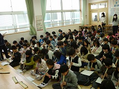 6時間目に、3年生は4クラス合同で音楽を行いました。6年生を送る会の第1回目の練習です。各クラスでリコーダーの練習を行っていますが、全員で合わせて演奏するのは初めてです。