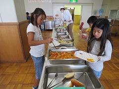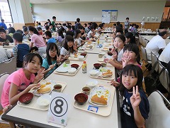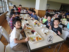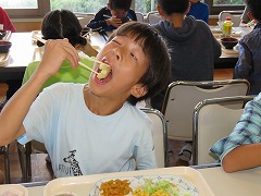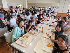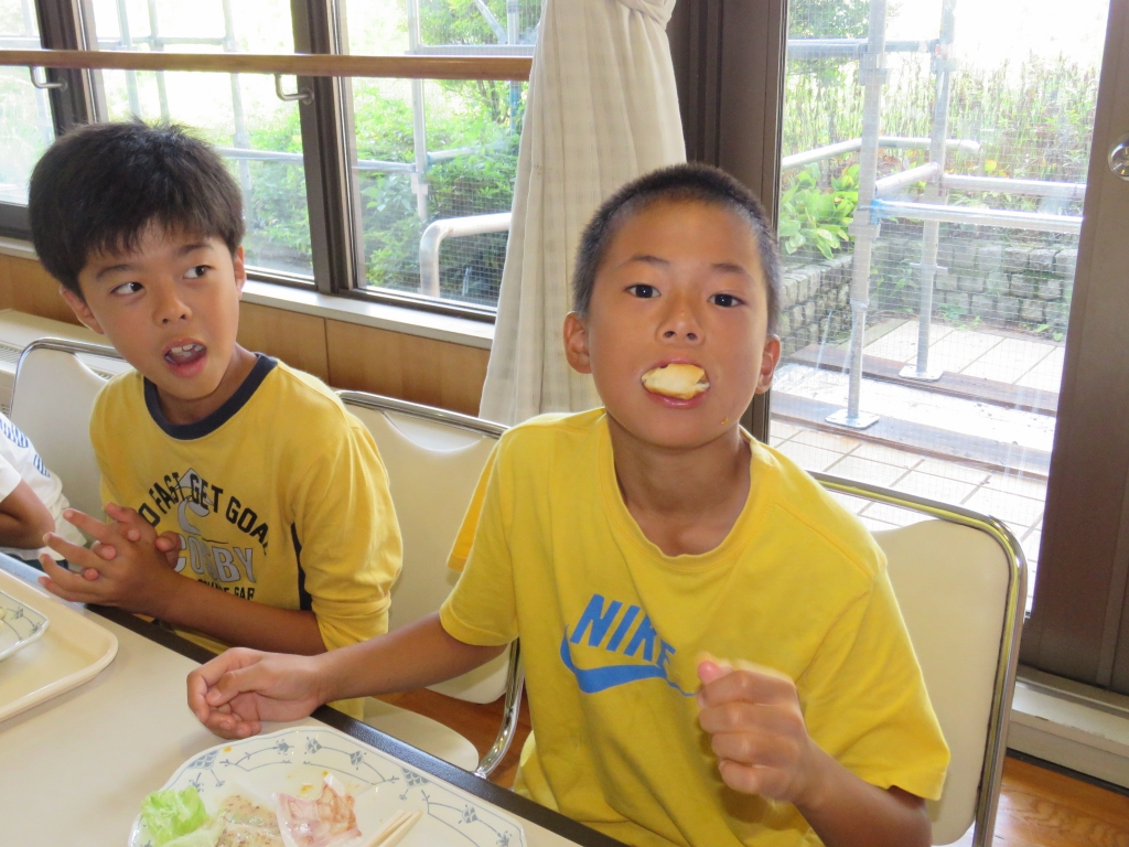 清掃活動を終え、8時過ぎの遅い朝食になりました。いつもは6時台に朝食を食べる子にとっては、待ちに待った食事の時間です。昨日の夕食から考えると14時間以上経った食事ですね。当然、おかわりも含め、みんなたくさん食べていました。