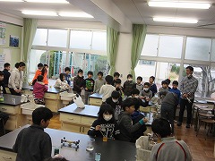 静かに教室に入ってくる3年生。教室を一周するように活動の様子を見守ります。手芸クラブでは、中央に飾られた作品に歓声が上がっていました。また、マジック・手品クラブでは、毎年恒例?の手品で3年生をお迎えしました。外のクラブも含め、全てを見学した3年生。やりたいクラブは決まったのでしょうか?