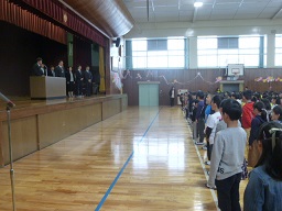 着任式では新しい先生方が自己紹介をしました。その後、始業式の中では校長先生から各担任の発表がありました。楽しい学校生活が送れるように、みんなで協力していきましょう。