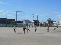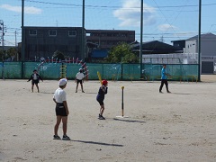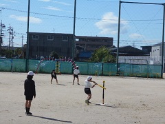 1時間目に5年生が体育でティーベースの授業をしていました。