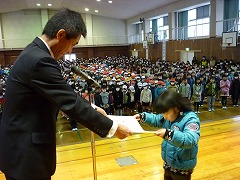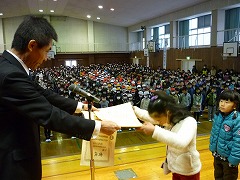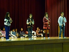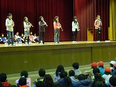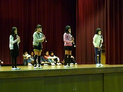 休み時間や下校後の時間に練習を重ねてきた音楽部の皆さんですが、今回、全校児童の前で合奏するのは最初で最後です。静かな体育館で、リコーダーの音だけが響きます。きっと緊張したことでしょう。そんな雰囲気でしたが、体育館にいる全員が、すばらしい合奏の音色に聞き入っていました。明日は練習の成果をしっかり出してきてほしいと思います。