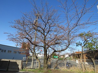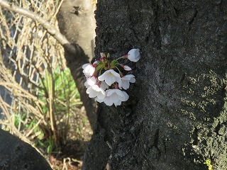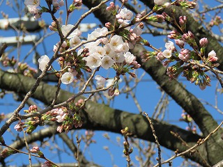 西門の桜の木のつぼみがふくらみ、何輪か桜が開きました。
