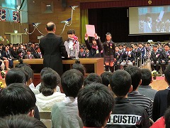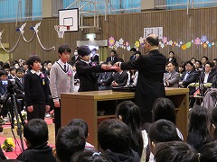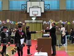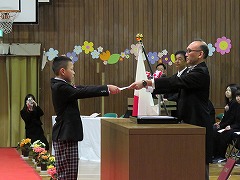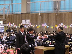 卒業証書授与です。160人を超える卒業生の数なので、全員が証書を受け取るだけでも約40分かかりましたが、卒業生も在校生も、授与の様子を静かにじっと見守ってくれました。