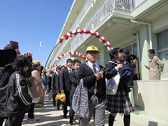 卒業生退場です。出口では、担任の先生が6年生全員を見送りました。