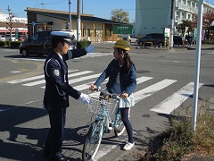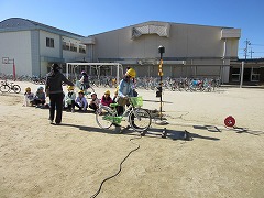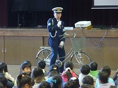 1、2年生は、おまわりさんから安全な自転車の乗り方を教えてもらいました。