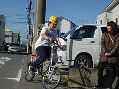 横断歩道では、自転車を降り押しながら通過します。