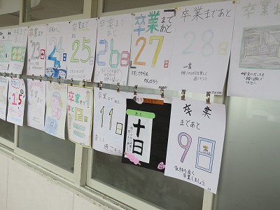各教室の廊下では、「卒業まであと何日」のカレンダーが、いよいよ1ケタのカウントダウンを告げています。