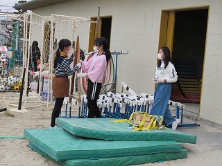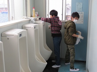 体育館・体育倉庫・特別教室のワックスがけ・トイレ・外溝の土あげなど、自分で取り組む内容を決めて取り組みました。