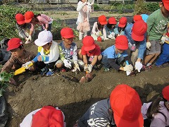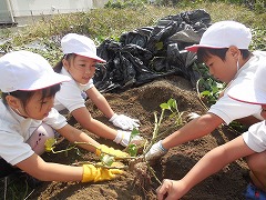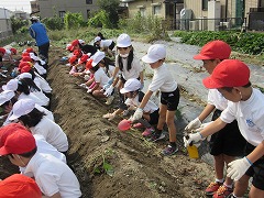 今日もさわやかな日になりました。日中は、何をしても気持ちがいいですね。さて、今日は、1年生と2年生が、学校の東にある農園で芋掘り体験をしました。
