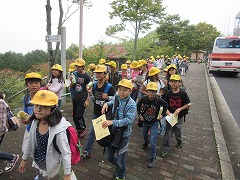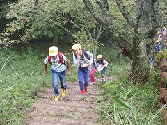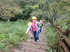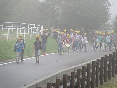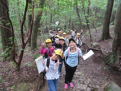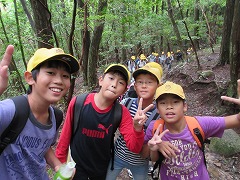 しかし、ここまでの日程で30分近くの遅れがあり、次の体験活動ができない恐れがあるため、ウォークラリー風のハイキングになりました。子どもたちの中には、しおりのコマ地図や、1日目にできなかった自然ビンゴのページを見ながら、ハイキングを楽しむ子もいました。班別で60分の予定のところを、50分ほどで全員が歩いたハイキングになりました。