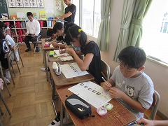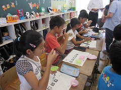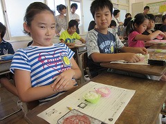 おいしいご飯を作るため、まずは先生が用意した2種類のご飯を比べ、違いを見つけました。「匂いが少し違う」「べたべたしている」「家で食べているご飯の味」など、気付いたことをプリントにメモしていきました。その後、「水の量」や「火加減」を正しくすることで、おいしいご飯を炊くことができると学びました。これで、3組の飯ごう炊さんは完璧ですね。